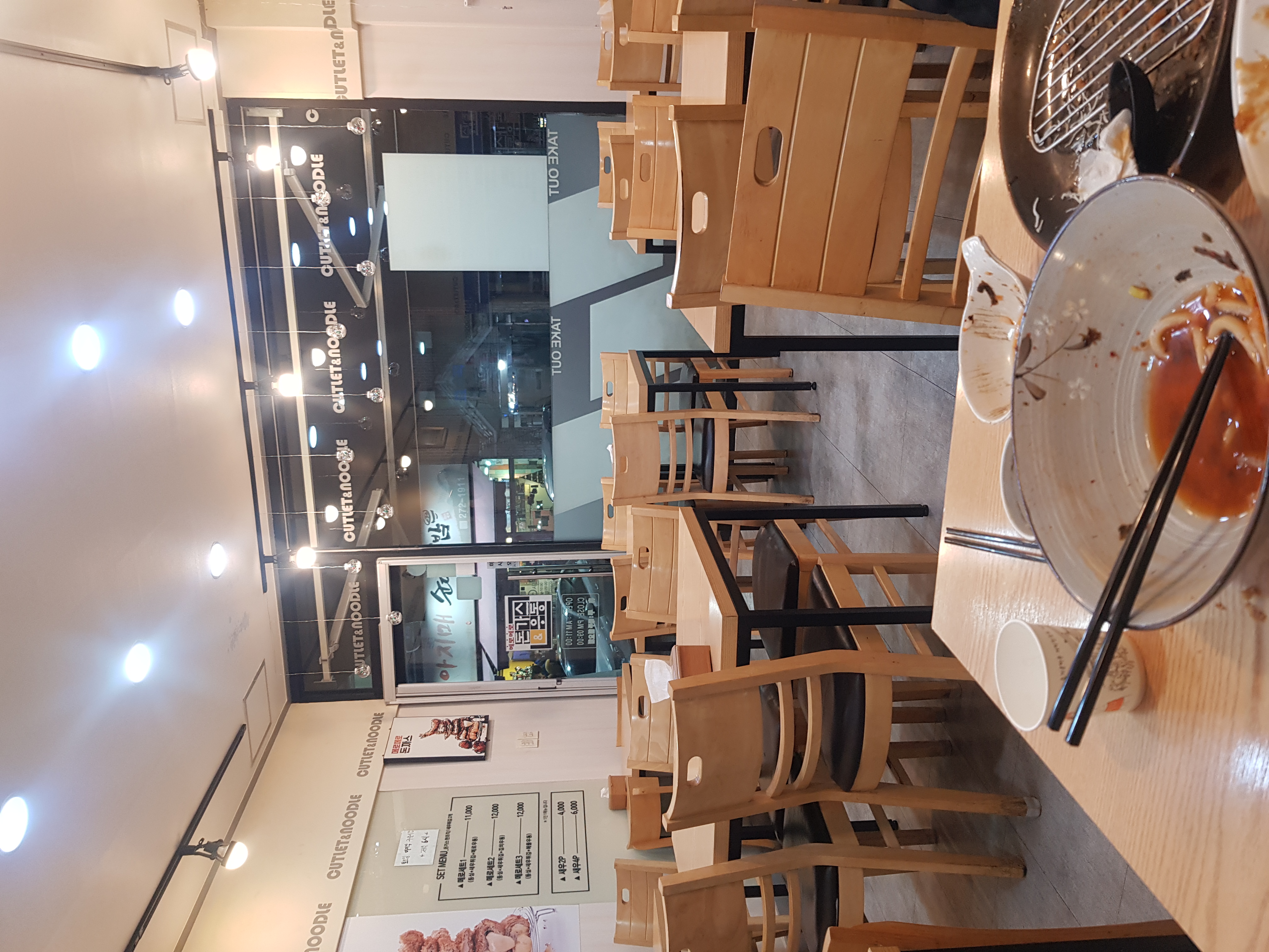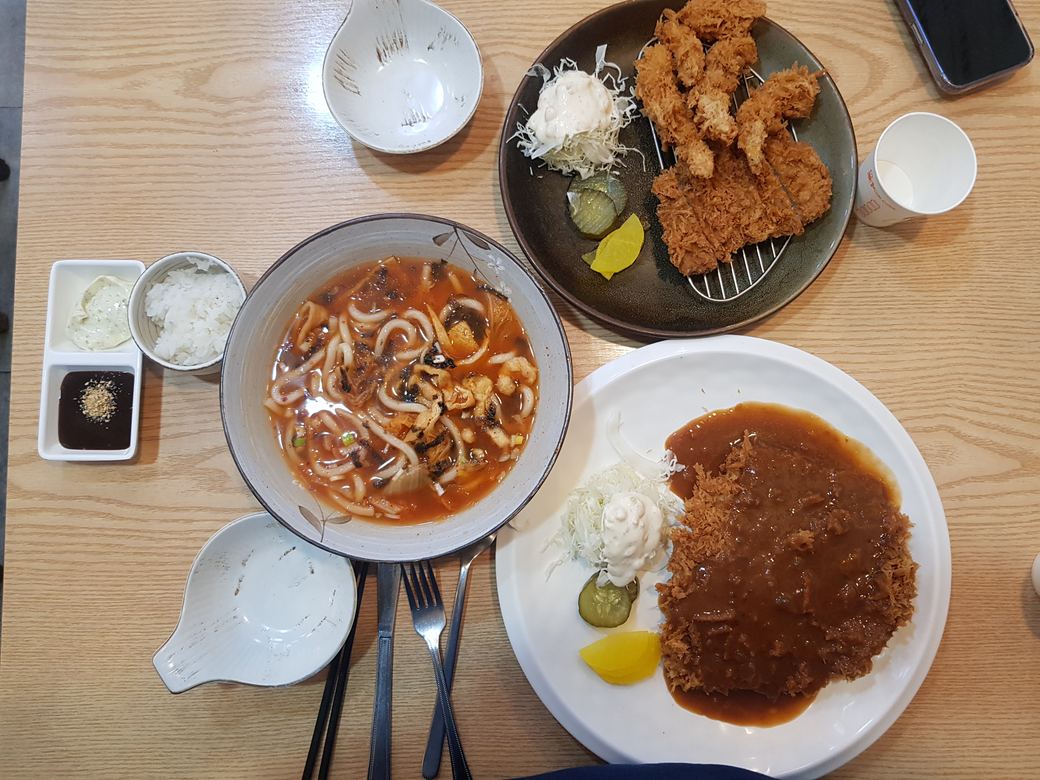 저는 오늘 친구와 김치우동세트와 왕돈까스를 선택했어요.